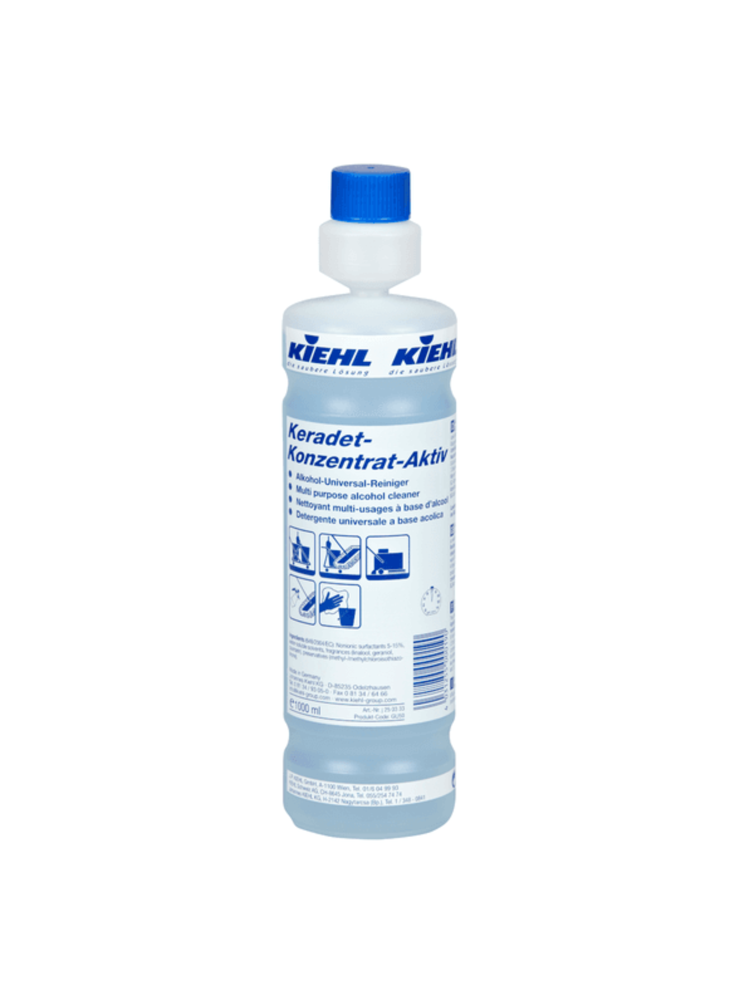 Το υγρό γενικού καθαρισμού KeraDet Active με αλκοόλη είναι ιδανικό για απολύμανση και καθαρισμό επιφανειών σε επαγγελματικούς χώρους, γραφεία, καταστήματα, καθώς και σε οικιακούς χώρους. Το προϊόν είναι ιδανικό για το γυάλισμα, την απομάκρυνση ρύπων και μικροβίων από όλες τις σκληρές επιφάνειες, προσφέροντας υψηλή αποδοτικότητα και άμεσο αποτέλεσμα. Ιδανικό για χρήση σε επιφάνειες που απαιτούν απολύμανση όπως πάγκοι, τραπέζια και άλλες καθημερινές επιφάνειες.