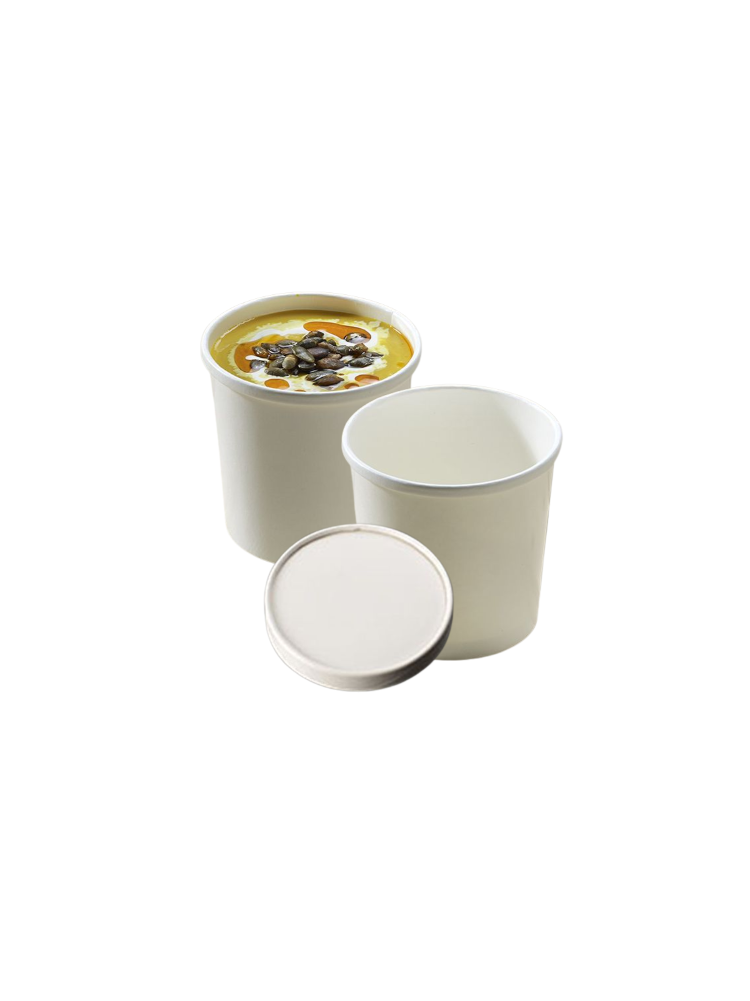 Χάρτινα μπολάκια τύπου λευκά, κατάλληλα για γιαούρτι, κρέμα ή παγωτό. Ιδανικά για ζεστά και κρύα εδέσματα, διαθέτουν όλα τα απαραίτητα πιστοποιητικά για επαφή με τρόφιμα. Κατάλληλα για επαγγελματική χρήση σε καταστήματα take away, delivery, ζαχαροπλαστεία και παγωτατζίδικα. Συνδυάζονται με ίσιο χάρτινο καπάκι (πωλείται ξεχωριστά).