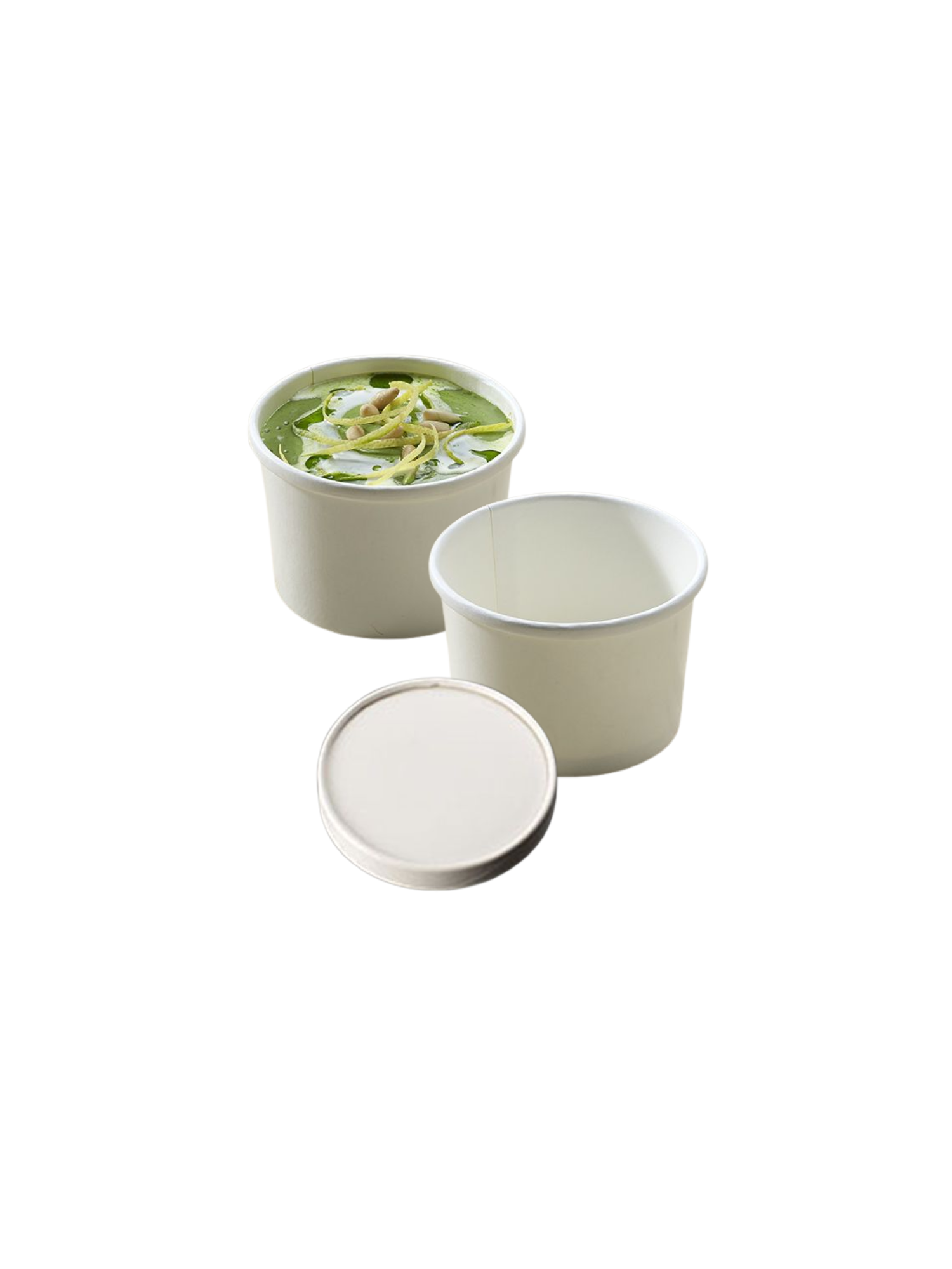 Χάρτινα μπολάκια τύπου λευκά, κατάλληλα για γιαούρτι, κρέμα ή παγωτό. Ιδανικά για ζεστά και κρύα εδέσματα, διαθέτουν όλα τα απαραίτητα πιστοποιητικά για επαφή με τρόφιμα. Κατάλληλα για επαγγελματική χρήση σε καταστήματα take away, delivery, ζαχαροπλαστεία και παγωτατζίδικα. Συνδυάζονται με ίσιο χάρτινο καπάκι (πωλείται ξεχωριστά).