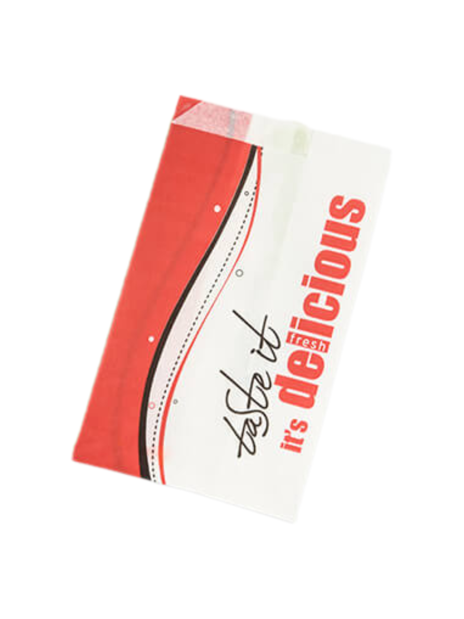 Φακελάκια σφολιάτας από βεζίταλ χαρτί, λευκά, διαστάσεων 13×19 εκ., με δυνατότητα εκτύπωσης του λογοτύπου ή της μακέτας του πελάτη. Ιδανικά για αρτοσκευάσματα, σφολιάτες, κουλούρια και άλλα είδη take away. Κατάλληλα για φούρνους, ζαχαροπλαστεία και χώρους εστίασης που επιθυμούν επώνυμη και επαγγελματική συσκευασία.