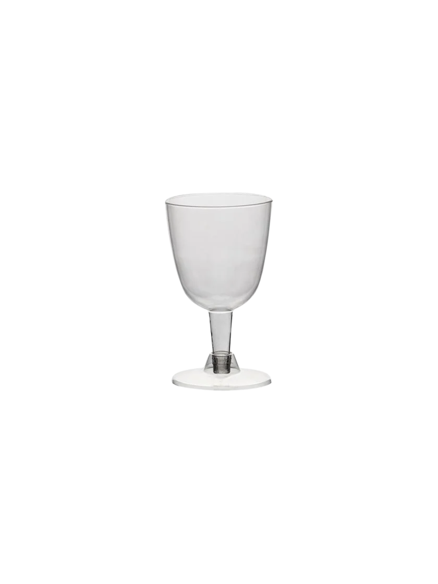 Τα κυλινδρικά ποτήρια κρασιού 150ml με κοντό πόδι είναι κατασκευασμένα από διάφανο πλαστικό PS, ιδανικά για σερβίρισμα κρασιού, aperitif, λικέρ ή sparkling water σε εκδηλώσεις, catering, γευσιγνωσίες και δεξιώσεις.