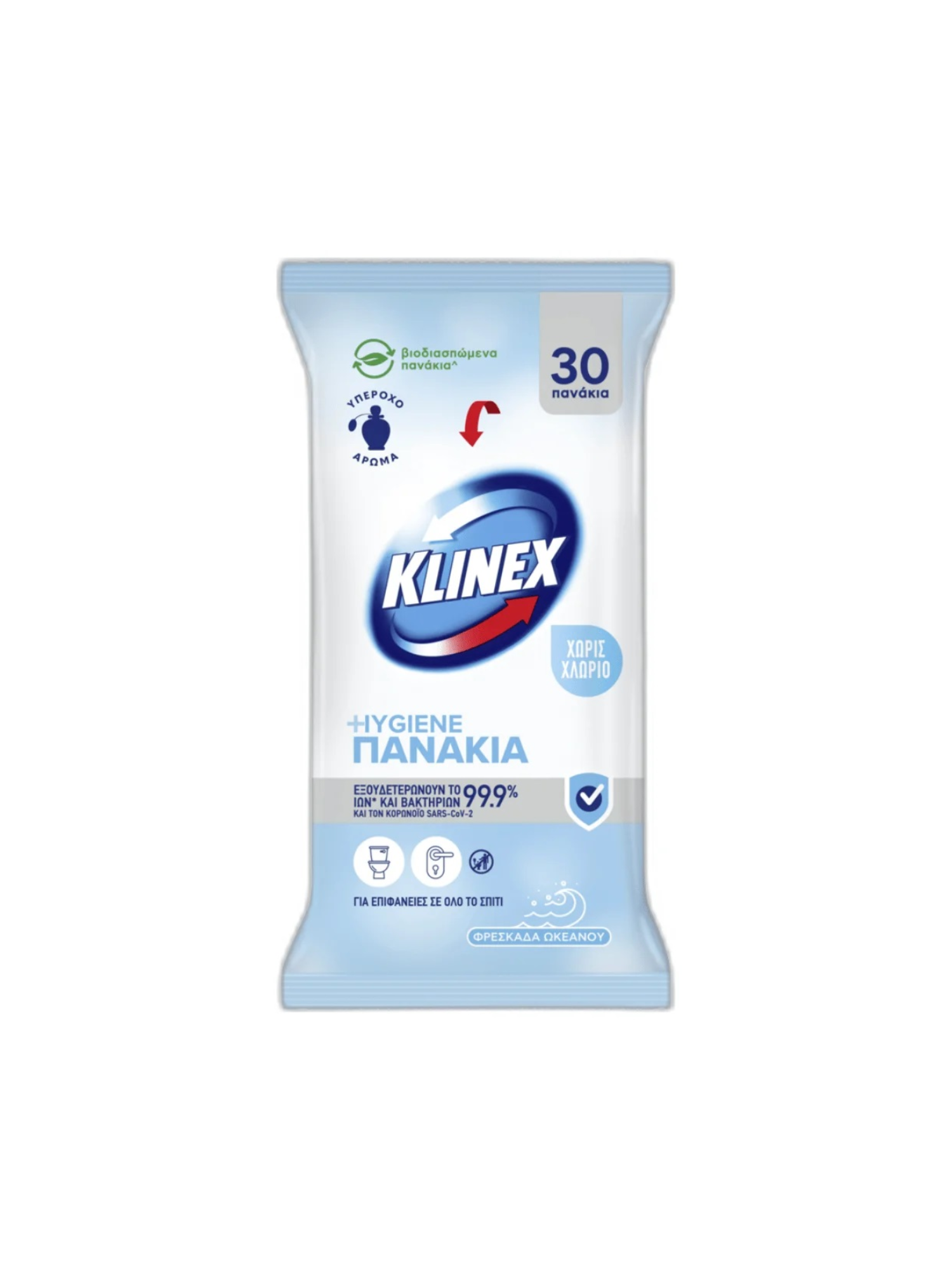 Τα υγρά πανάκια καθαρισμού Klinex, σε συσκευασία 30 τεμαχίων, είναι ιδανικά για τον άμεσο καθαρισμό και απολύμανση επιφανειών στο σπίτι ή στον επαγγελματικό χώρο.