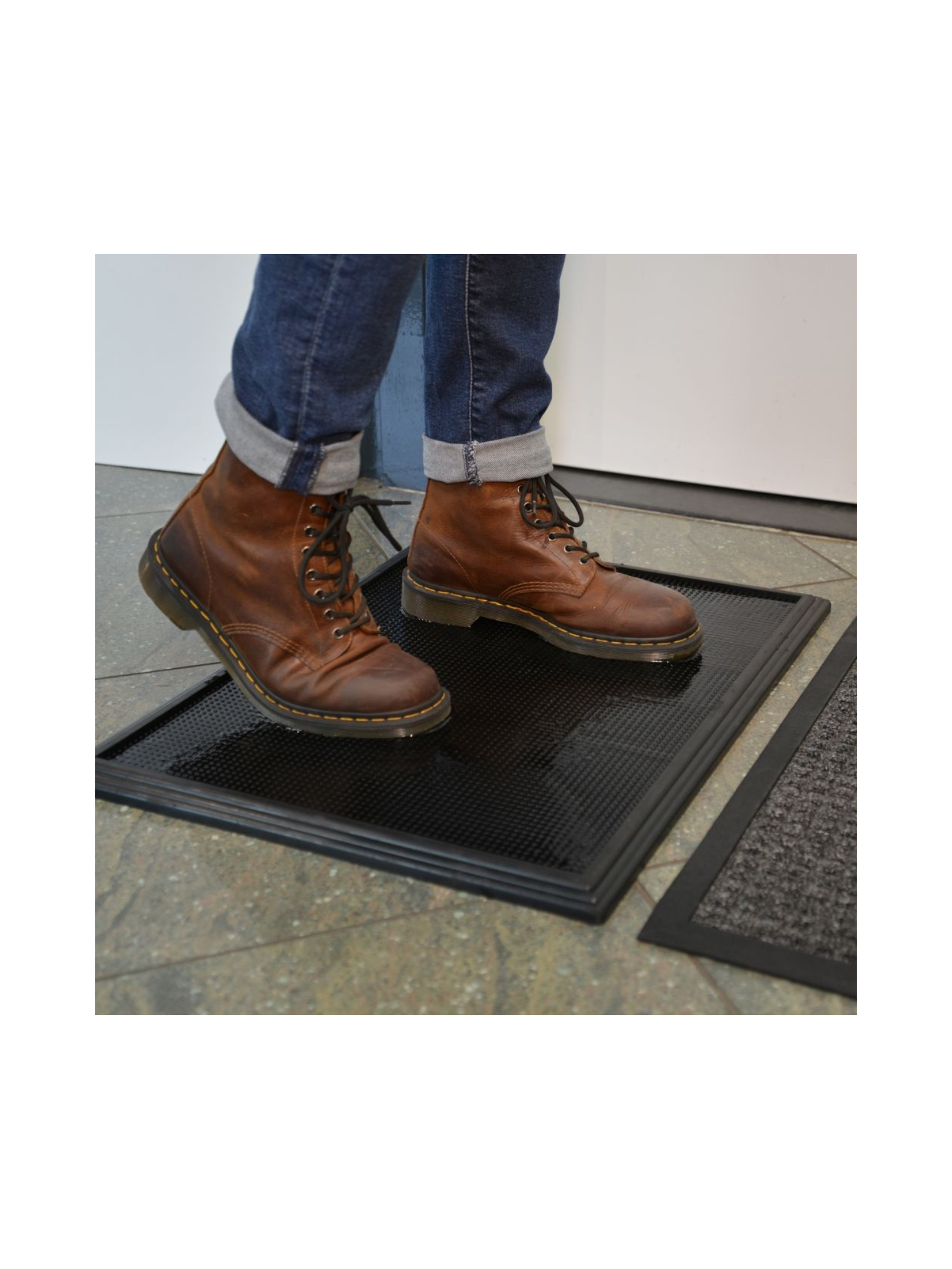 Διαθέτει εκατοντάδες λαστιχένια δάκτυλα που καθαρίζουν αποτελεσματικά τη βρωμιά και τη λάσπη από τα παπούτσια, ενώ παράλληλα συγκρατούν το απολυμαντικό υγρό για μέγιστη απολύμανση.