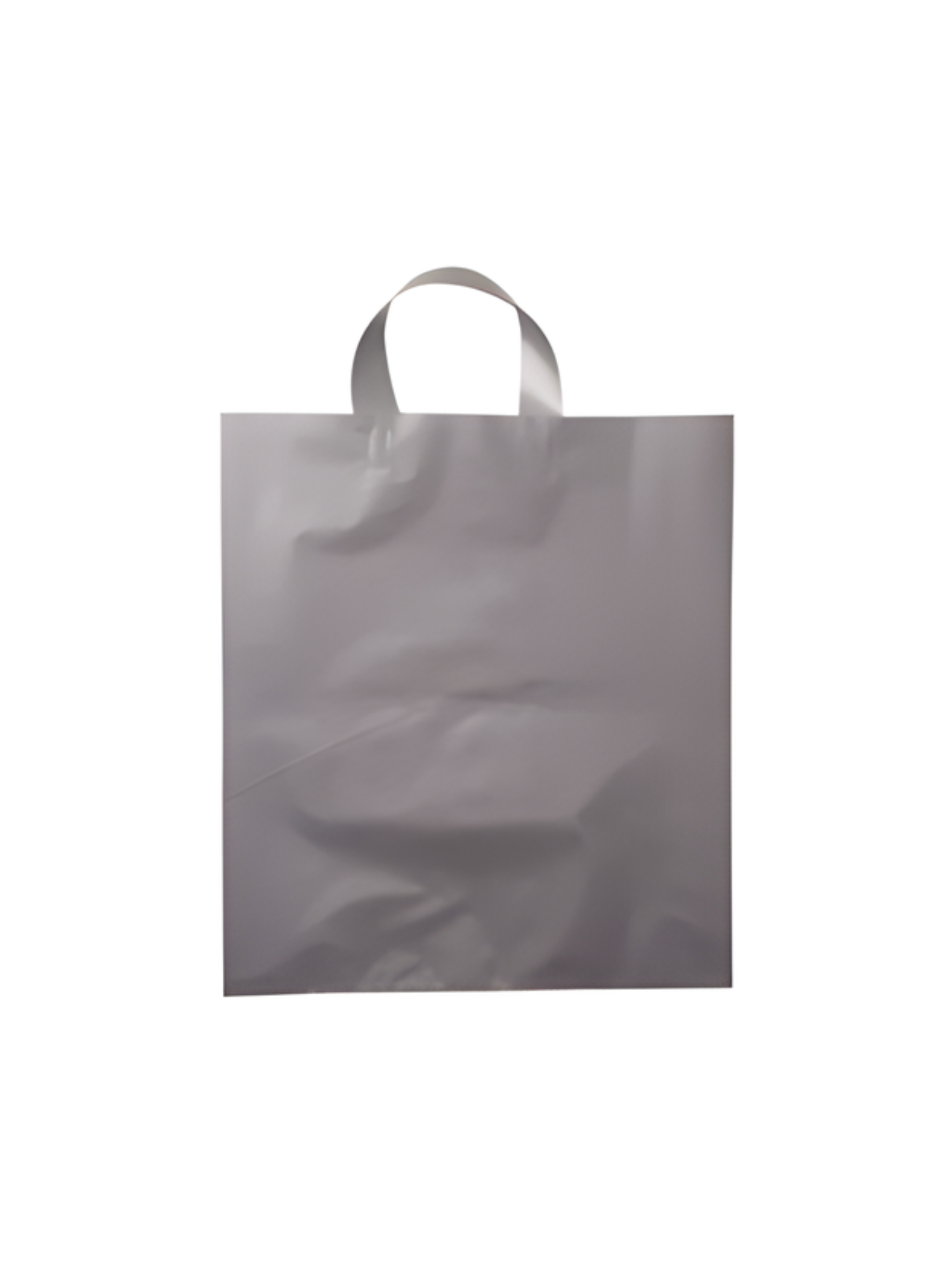 Πλαστικές σακούλες πελατών τύπου loop σε ασημί χρώμα, διαστάσεων 60×60 εκατοστά και πάχους 60mic. Κατασκευασμένες από ανθεκτικό LDPE υλικό, είναι κατάλληλες για καταστήματα λιανικής, ενδύματα, εκθέσεις και είδη δώρων. Ο κομψός σχεδιασμός και η εργονομική λαβή τύπου loop προσφέρουν άνεση στη μεταφορά και επαγγελματική εμφάνιση.